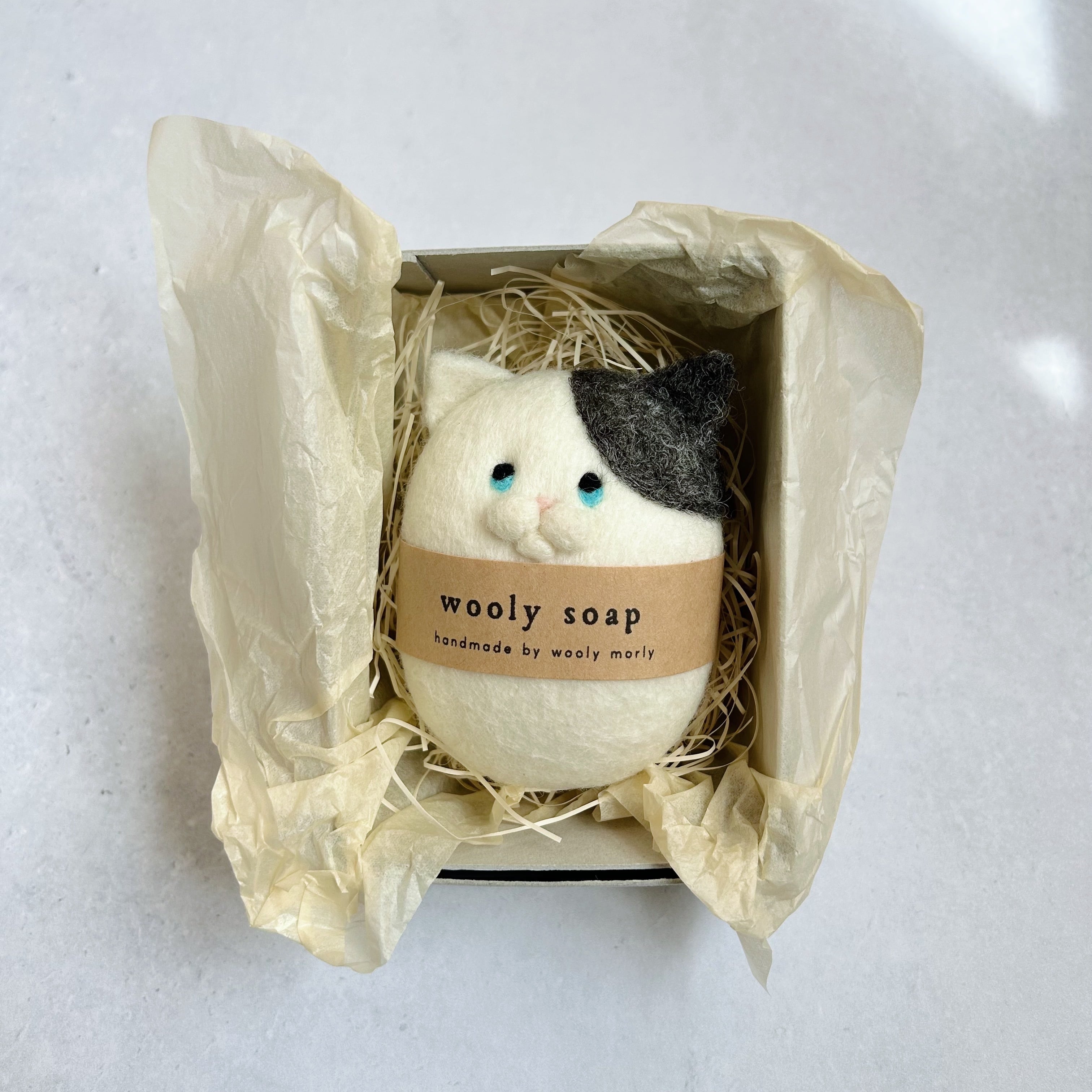 wooly soapは100%天然羊毛に包まれた