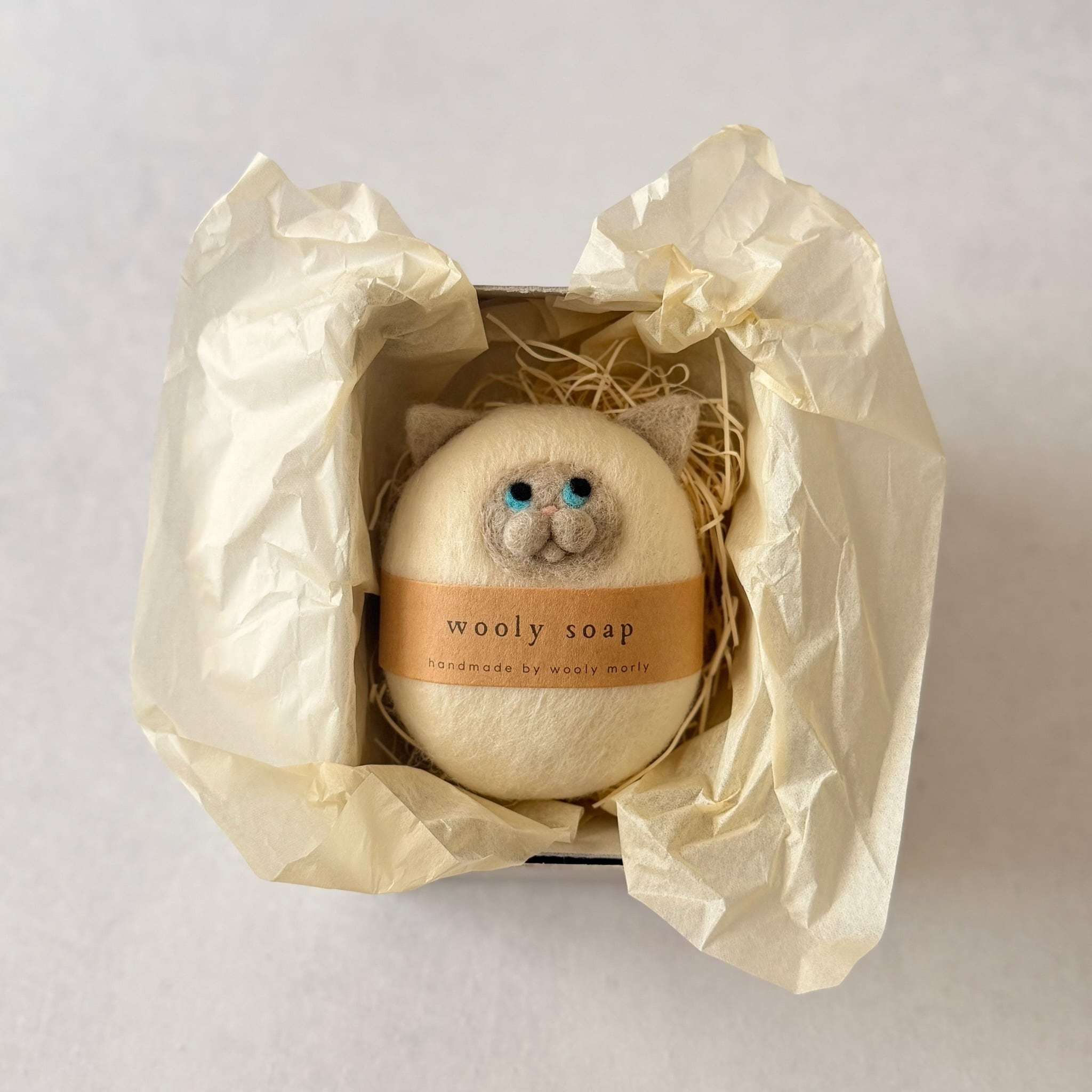 wooly soapは100%天然羊毛に包まれた石鹸です。